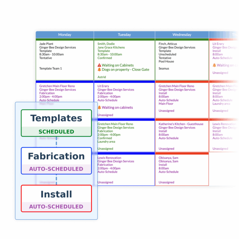 - Scheduling at Scale: The shop relies on Systemize to manage everything from templating, to shop production, to installation scheduling. The increase in efficiency helped the shop double its production capacity.